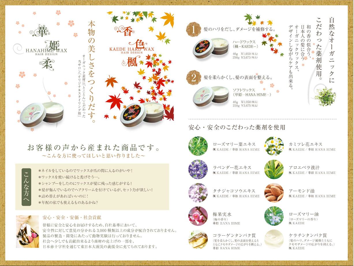 トリートメントワックスとして2年間かけて作りました。